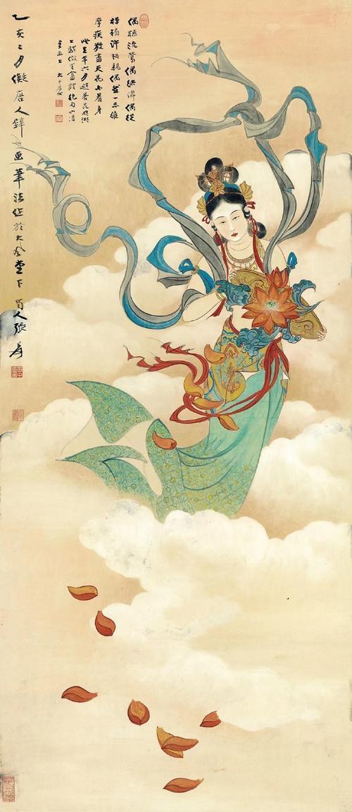 多年后,张大千这幅承载着思念和遗憾的《天女散花》出现在了拍卖会上,由于这个特殊的背景和感人的故事,最终以8400万人民币成交。