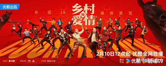 其中适合春节热闹氛围的喜剧题材居多,最经典的当属已陪伴观众二十载的《乡村爱情》系列,最新一季已于2月10日登陆优酷。在正式开播前,以“赵四葬礼”为开场的预告片便将词条#乡村爱情18赵四嘎了#推上热搜高位,到了正片中才知道是一场自导自演的“假死闹剧”。